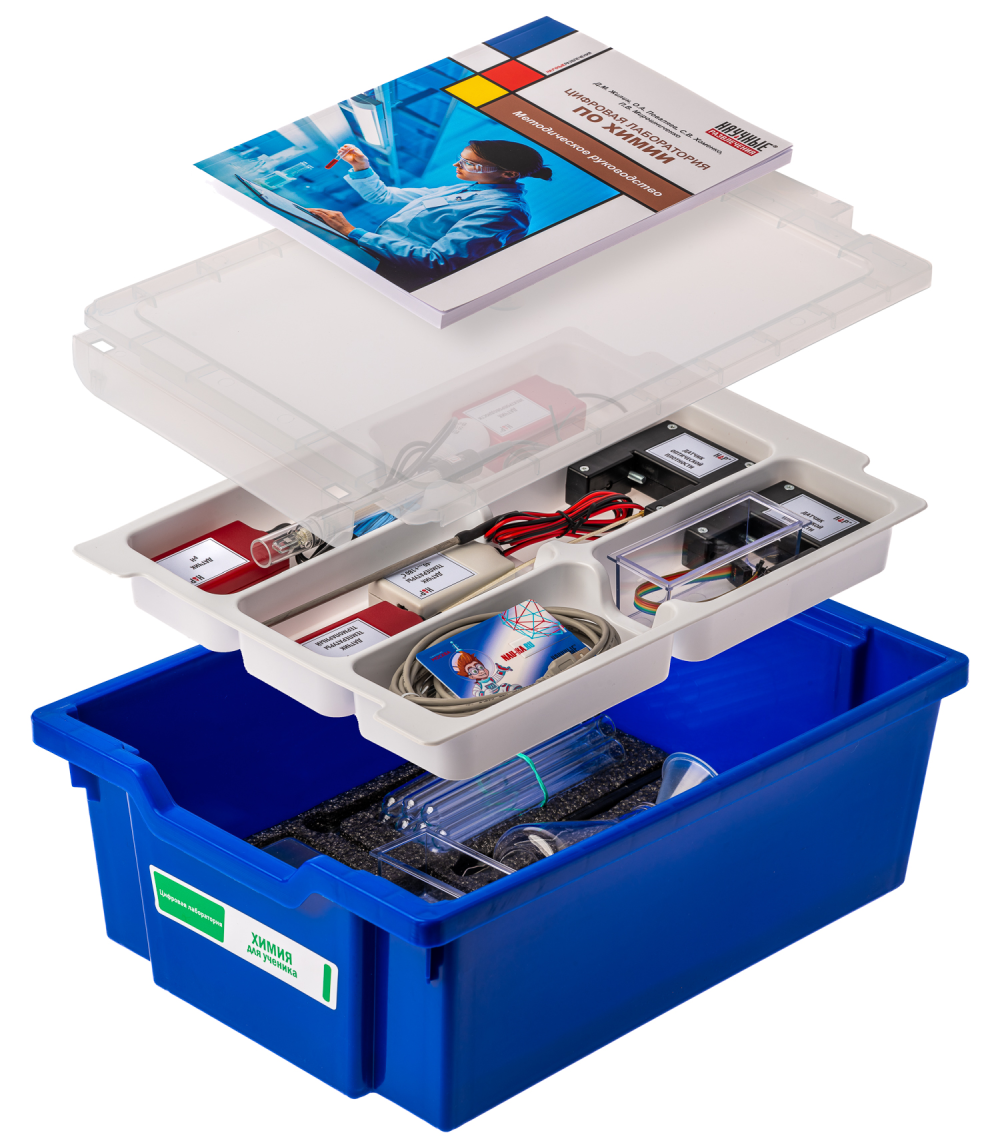Цифровая лаборатория по химии для ученика – это комплект датчиков, на базе которых поочередно выполняются работы по измерению параметров окружающей среды и набор учебного оборудования, необходимого для выполнения химических опытов.